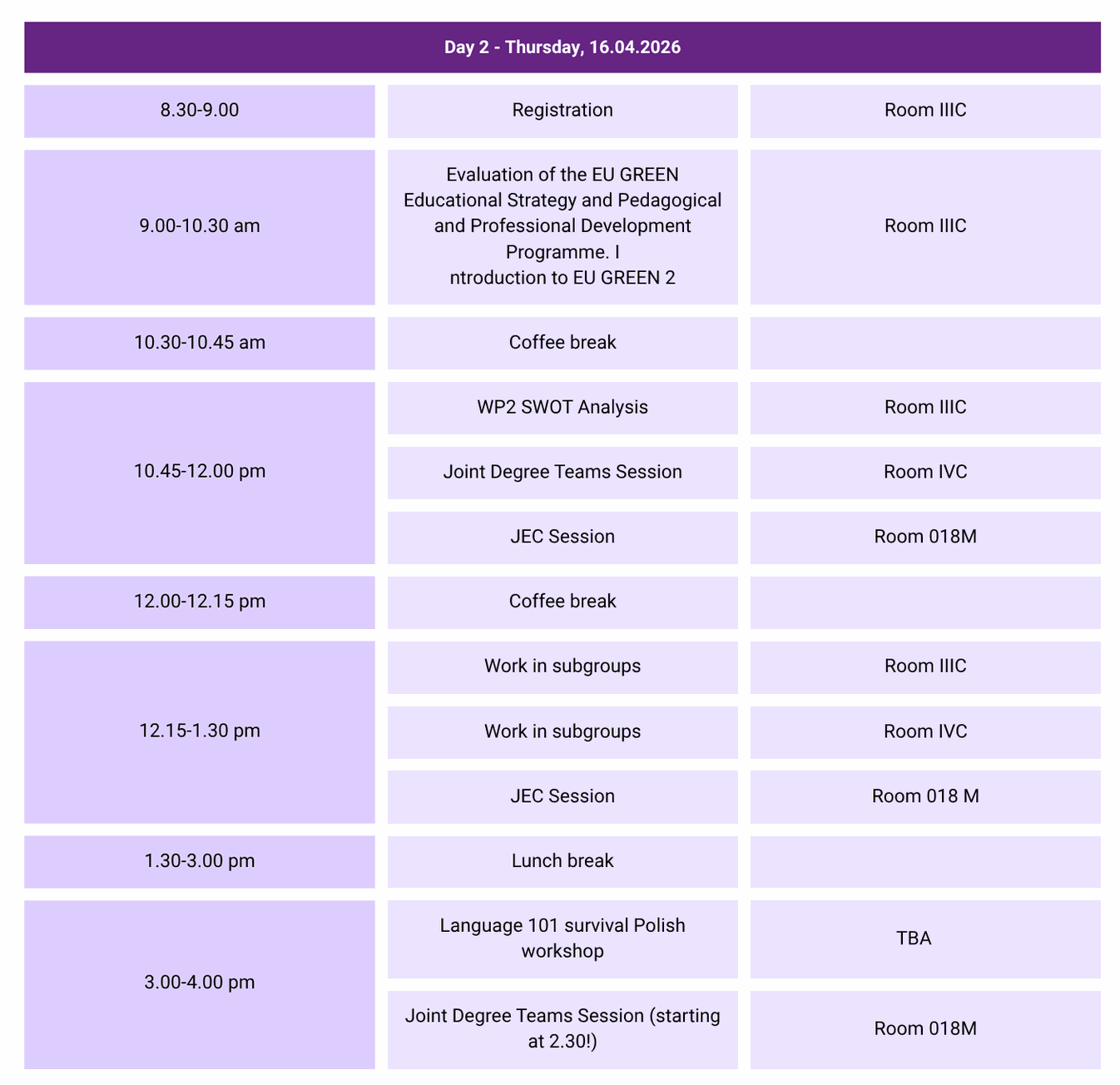 - Meeting place - rooms IIIC and IVC, session for JEC in room 018M