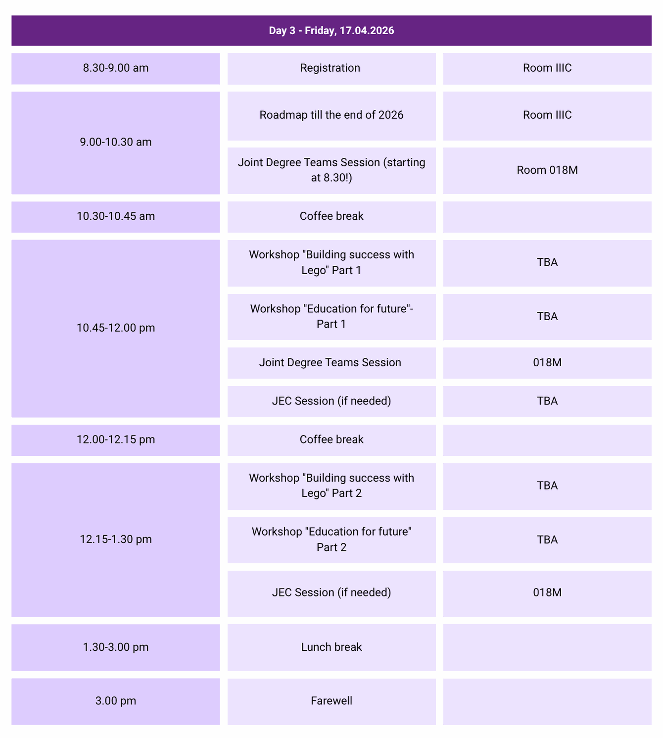 - Meeting place - rooms IIIC and IVC, session for JEC in room 018M
